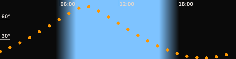 | Höchster Stand (Kulmination) | 08:42 Uhr (h = 80,4°) |