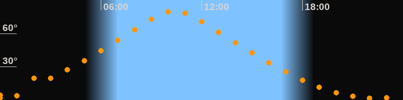 | Höchster Stand (Kulmination) | 10:23 Uhr (h = 80,4°) |