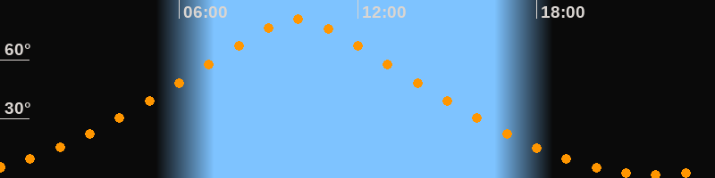 | Höchster Stand (Kulmination) | 09:59 Uhr (h = 80,4°) |