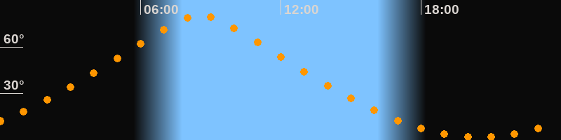 | Höchster Stand (Kulmination) | 08:32 Uhr (h = 80,4°) |