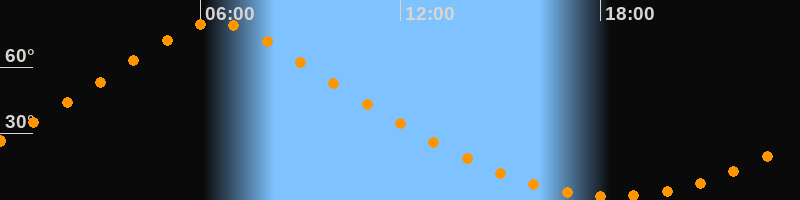 | Höchster Stand (Kulmination) | 06:28 Uhr (h = 80,4°) |