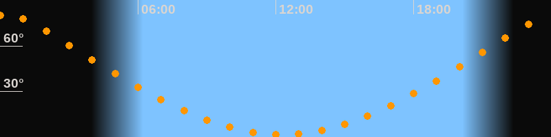 | Höchster Stand (Kulmination) | 00:13 Uhr (h = 80,4°) |