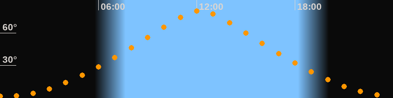 | Höchster Stand (Kulmination) | 12:12 Uhr (h = 80,4°) |