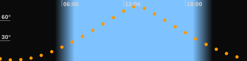 | Höchster Stand (Kulmination) | 13:16 Uhr (h = 80,4°) |