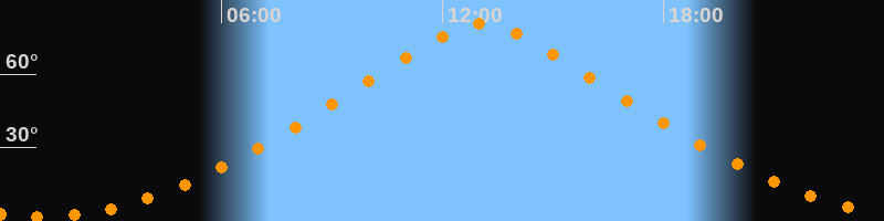 | Höchster Stand (Kulmination) | 13:05 Uhr (h = 80,4°) |