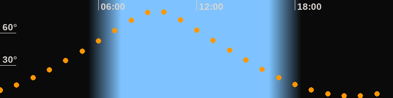 | Höchster Stand (Kulmination) | 09:31 Uhr (h = 80,4°) |