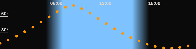 | Höchster Stand (Kulmination) | 08:49 Uhr (h = 80,4°) |