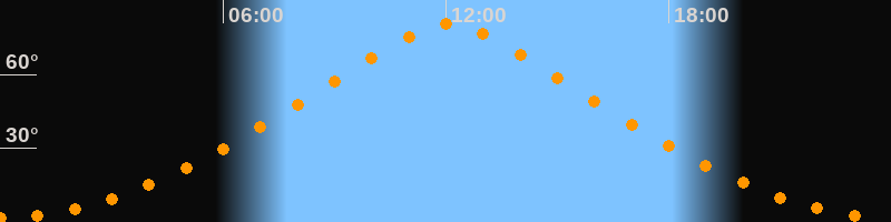 | Höchster Stand (Kulmination) | 12:04 Uhr (h = 80,4°) |