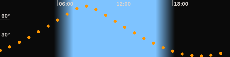 | Höchster Stand (Kulmination) | 08:54 Uhr (h = 80,4°) |
