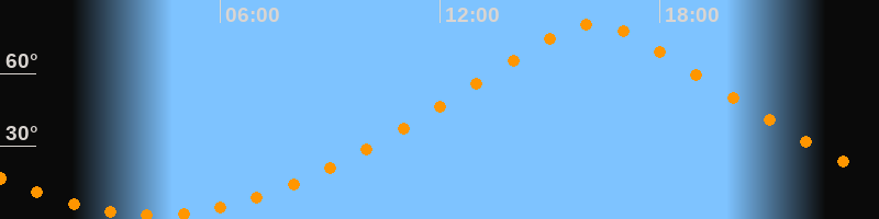 | Höchster Stand (Kulmination) | 16:11 Uhr (h = 80,4°) |