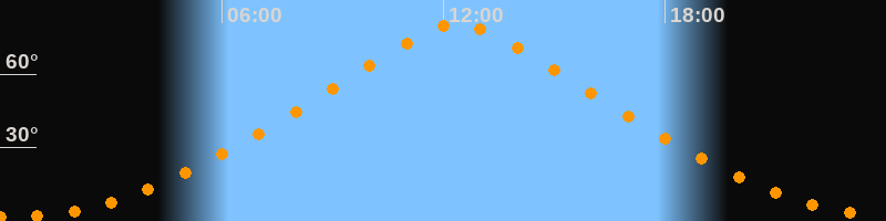| Höchster Stand (Kulmination) | 12:23 Uhr (h = 80,4°) |