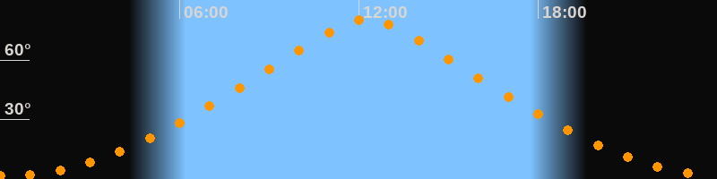| Höchster Stand (Kulmination) | 12:15 Uhr (h = 80,4°) |