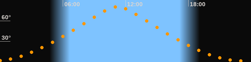| Höchster Stand (Kulmination) | 11:12 Uhr (h = 80,4°) |