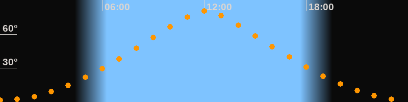 | Höchster Stand (Kulmination) | 12:04 Uhr (h = 80,4°) |