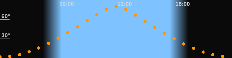 | Höchster Stand (Kulmination) | 11:57 Uhr (h = 80,4°) |