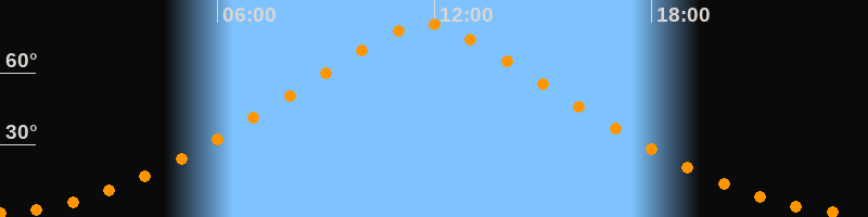 | Höchster Stand (Kulmination) | 11:45 Uhr (h = 80,4°) |