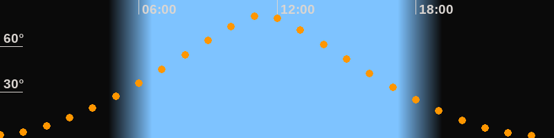 | Höchster Stand (Kulmination) | 11:21 Uhr (h = 80,4°) |