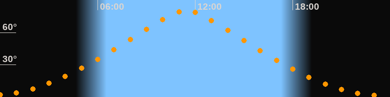 | Höchster Stand (Kulmination) | 11:26 Uhr (h = 80,4°) |