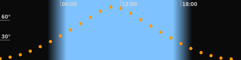 | Höchster Stand (Kulmination) | 11:18 Uhr (h = 80,4°) |