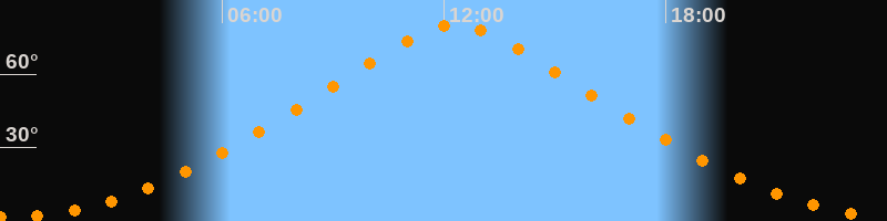 | Höchster Stand (Kulmination) | 12:18 Uhr (h = 80,4°) |