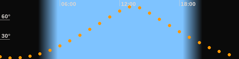 | Höchster Stand (Kulmination) | 13:19 Uhr (h = 80,4°) |