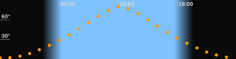 | Höchster Stand (Kulmination) | 12:12 Uhr (h = 80,4°) |