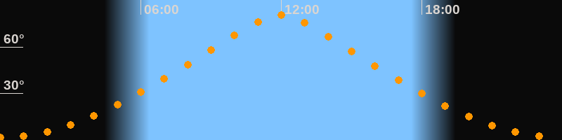 | Höchster Stand (Kulmination) | 11:56 Uhr (h = 80,4°) |