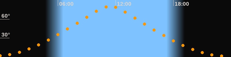 | Höchster Stand (Kulmination) | 11:25 Uhr (h = 80,4°) |