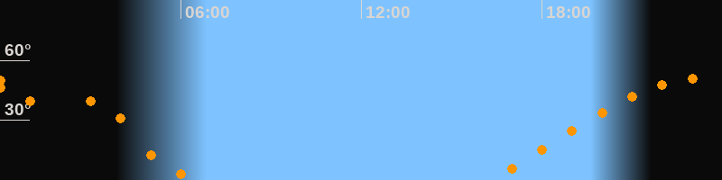 | Aufgang | 16:18 Uhr im Osten (αAz = 70,6°) |