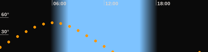 | Höchster Stand (Kulmination) | 06:05 Uhr (h = 51°) |