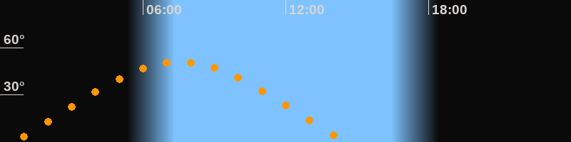| Höchster Stand (Kulmination) | 07:32 Uhr (h = 51°) |