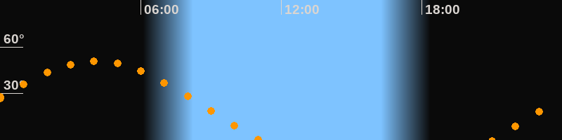 | Aufgang | 20:59 Uhr im Osten (αAz = 70,6°) |