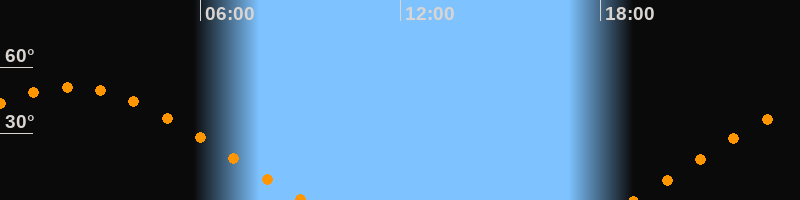 | Aufgang | 18:59 Uhr im Osten (αAz = 70,6°) |