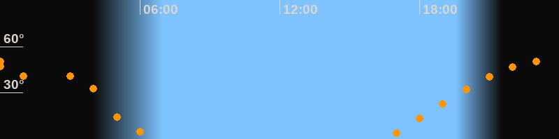 | Aufgang | 16:28 Uhr im Osten (αAz = 70,6°) |