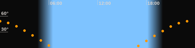| Aufgang | 16:29 Uhr im Osten (αAz = 70,6°) |