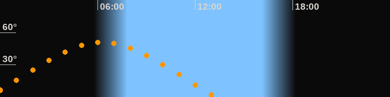 | Höchster Stand (Kulmination) | 06:16 Uhr (h = 51°) |