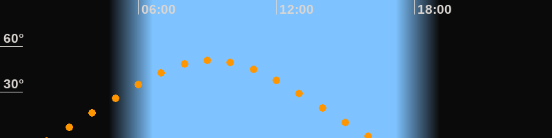 | Höchster Stand (Kulmination) | 09:10 Uhr (h = 51°) |