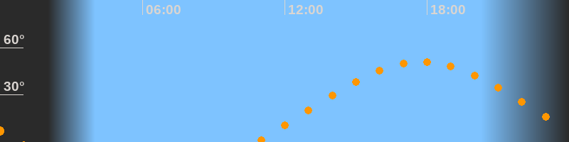 | Aufgang | 10:45 Uhr im Osten (αAz = 70,6°) |
