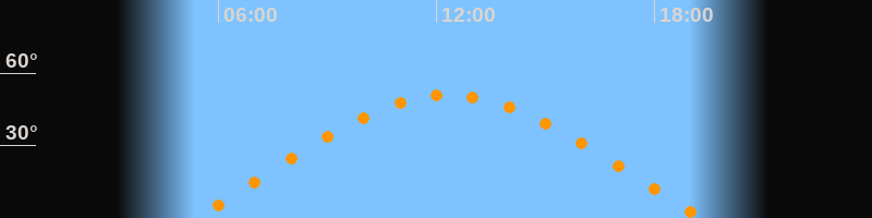 | Höchster Stand (Kulmination) | 12:20 Uhr (h = 51°) |