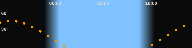 | Aufgang | 18:19 Uhr im Osten (αAz = 70,4°) |