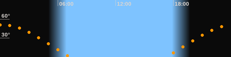| Aufgang | 17:12 Uhr im Osten (αAz = 70,4°) |
