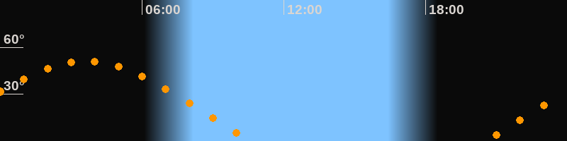 | Aufgang | 20:30 Uhr im Osten (αAz = 70,4°) |