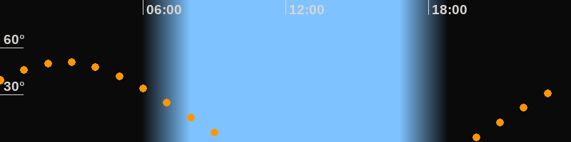 | Aufgang | 19:35 Uhr im Osten (αAz = 70,4°) |
