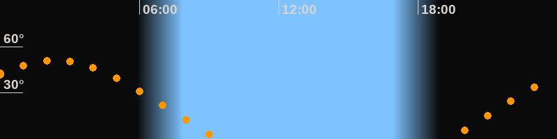 | Aufgang | 19:16 Uhr im Osten (αAz = 70,4°) |