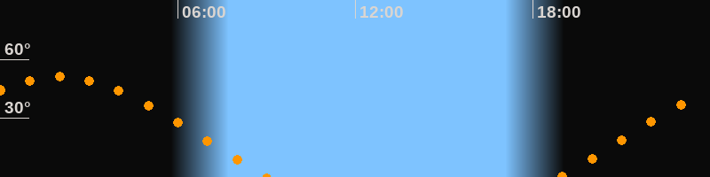 | Aufgang | 18:54 Uhr im Osten (αAz = 70,4°) |