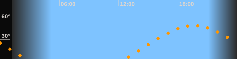 | Aufgang | 12:34 Uhr im Osten (αAz = 70,4°) |