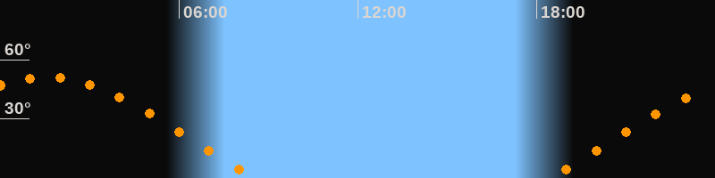 | Aufgang | 18:26 Uhr im Osten (αAz = 70,4°) |