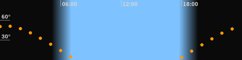 | Aufgang | 17:29 Uhr im Osten (αAz = 70,4°) |