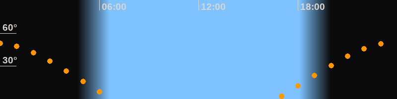 | Aufgang | 16:39 Uhr im Osten (αAz = 70,4°) |