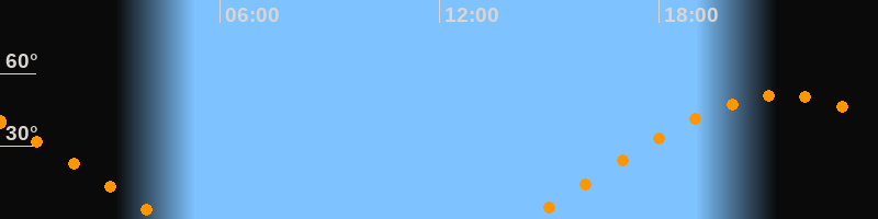 | Untergang | 04:30 Uhr im Westen (αAz = 289,6°) |